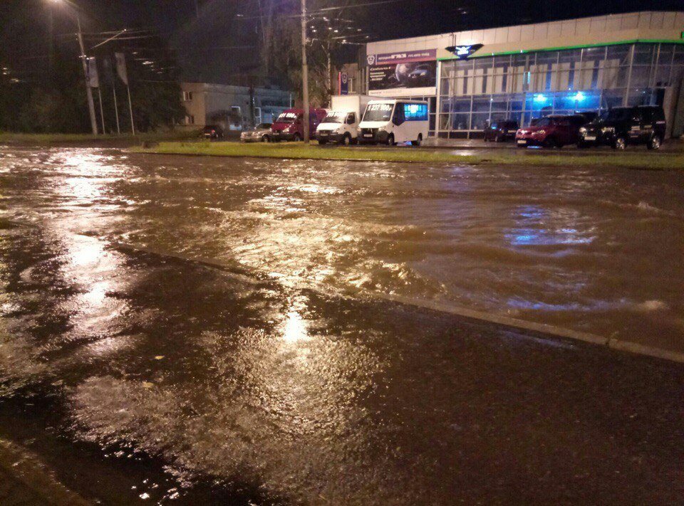 Сегодня ночью в Великом Новгороде прошел ливень, многие улицы города затопило.